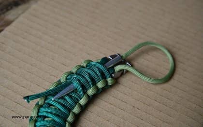- Materialien: 2 x 2,5 Meter Paracord, 1 x Verschluss, 1 x Feuerzeug
